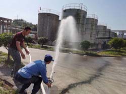 根據企業應急預案要求及安全計劃安排,安全上樹立憂患意識,做到常備不懈;5月12日公司安環部組織當班操作工、動力部安環部、生產部、倉管人員進行重大危險源噴泡沫應急演練。